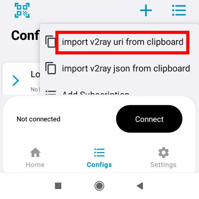Choose downloaded configuration file or copy file content and connect